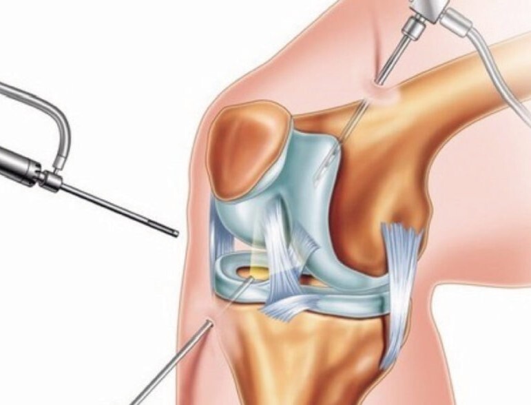 Артроскопия — это эндоскопический метод вмешательства на суставе, который проводится с помощью миниатюрной видеокамеры (артроскопа) и специальных инструментов. Через два-три прокола размером не более 5-7 мм хирург вводит артроскоп, который транслирует увеличенное изображение полости сустава на высокоточный монитор. Второй прокол служит портом для инструментов: кусачек, шейверов (специальных измельчителей), плазменных коагуляторов и других приспособлений, позволяющих выполнять тончайшие манипуляции. Для улучшения обзора и увеличения рабочего пространства в сустав подается стерильная жидкость, которая одновременно промывает его и останавливает кровотечение из мелких сосудов.