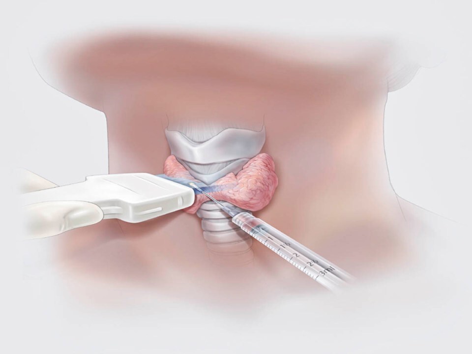 Пункцию выполняет хирург-эндокринолог под обязательным контролем УЗИ. Это гарантирует точное попадание иглы в узел и безопасность.